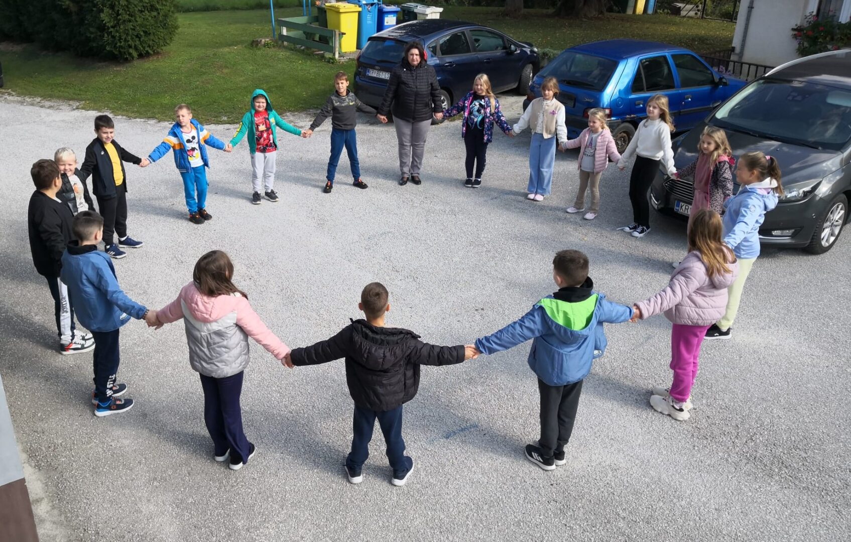 Obilježili smo Dan nenasilja u utorak 2.listopada 2025. zajedničkim okupljanjem na školskom dvorištu i stvaranjem lanca nenasilja držeći se za ruke.