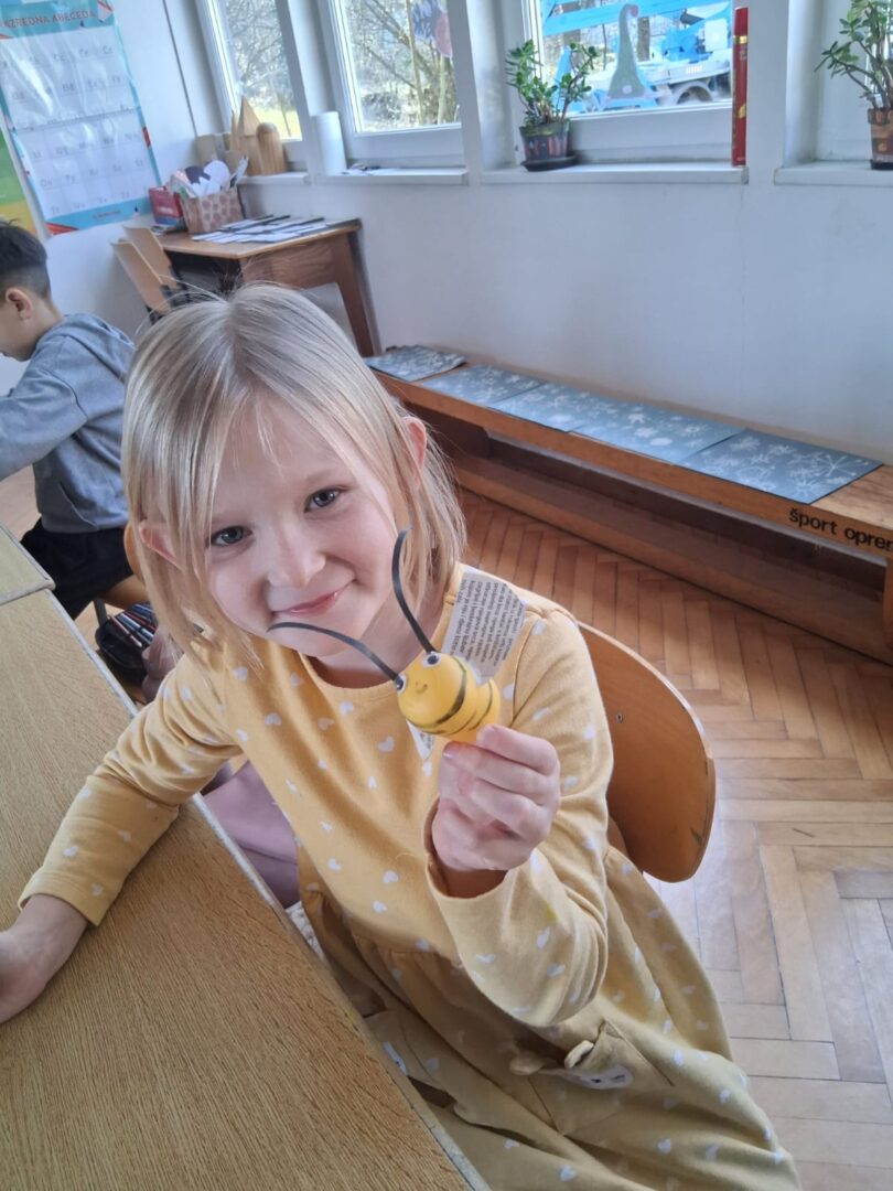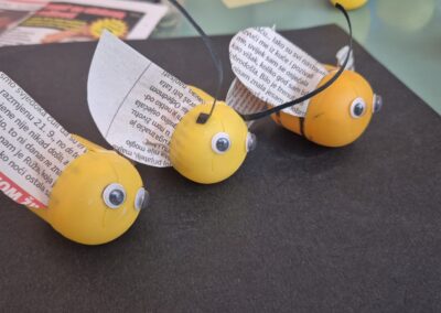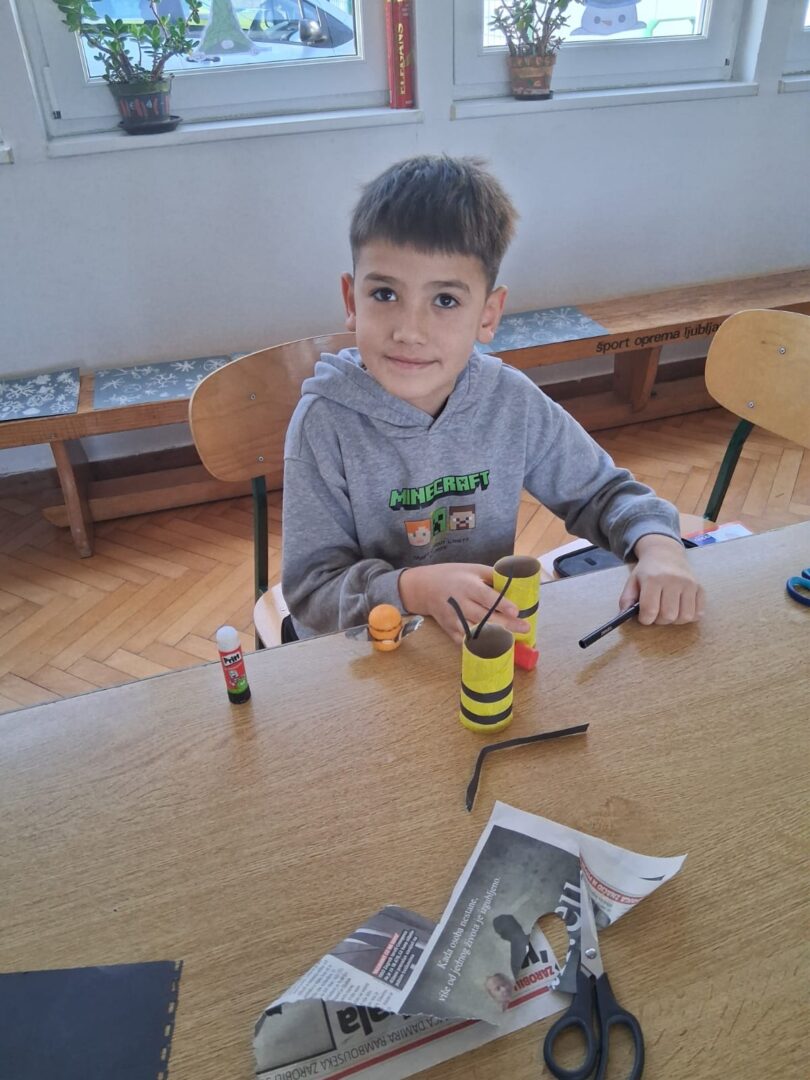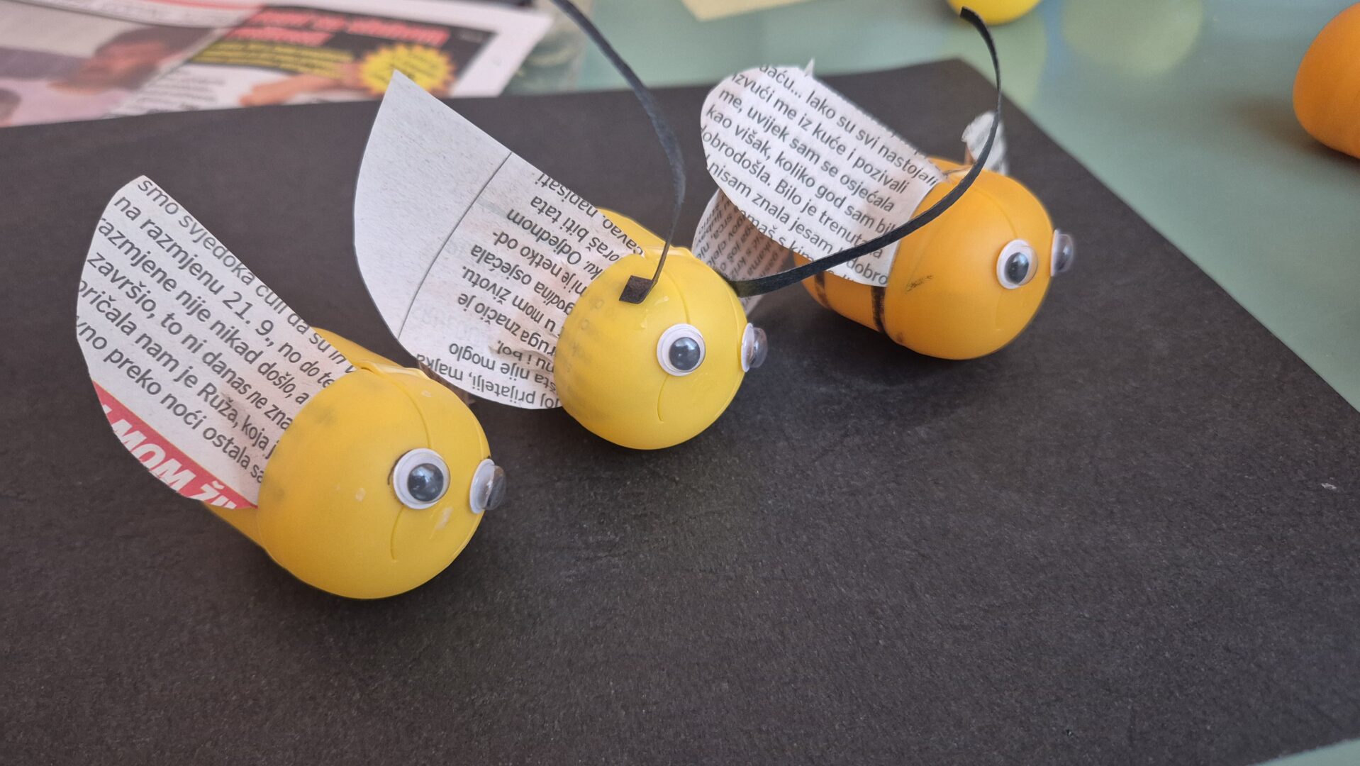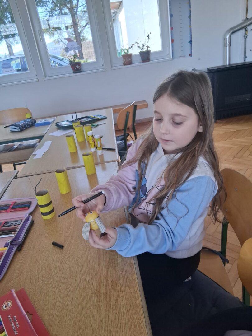 Radionica je protekla uz mnogo smijeha, kreativnosti i ekološkog duha, a nastale “pčelice” ponosno su izložene u učionici.