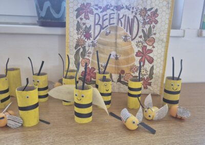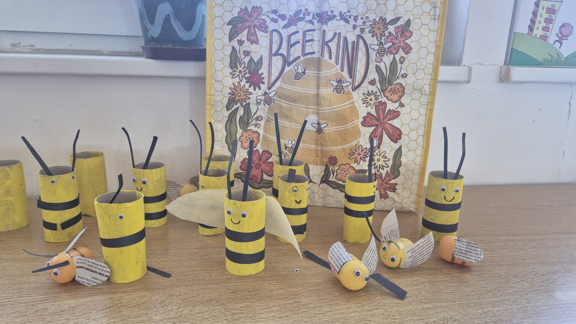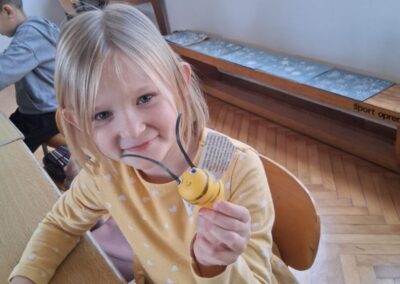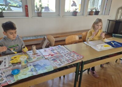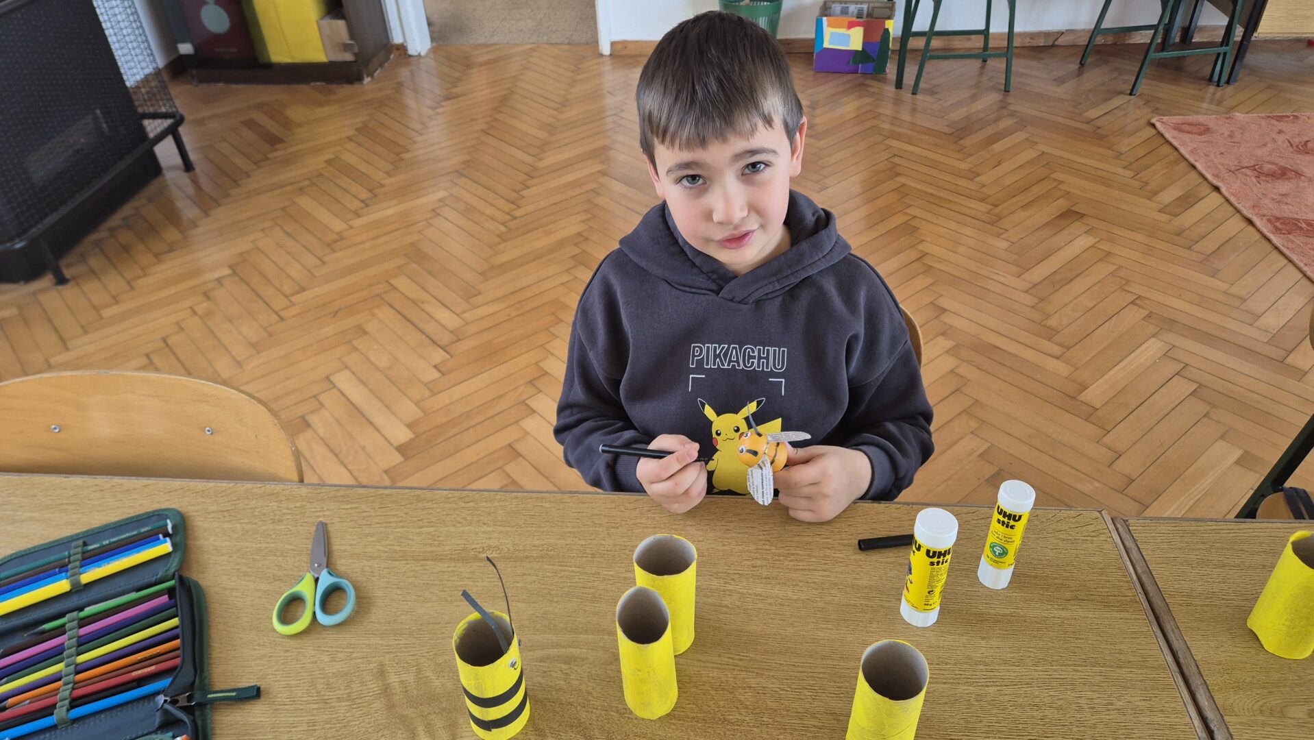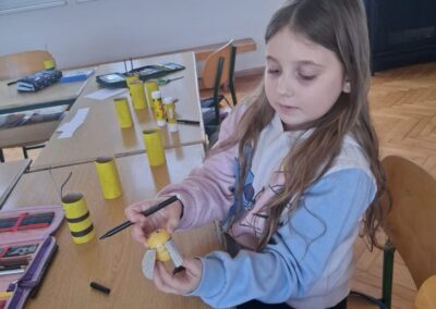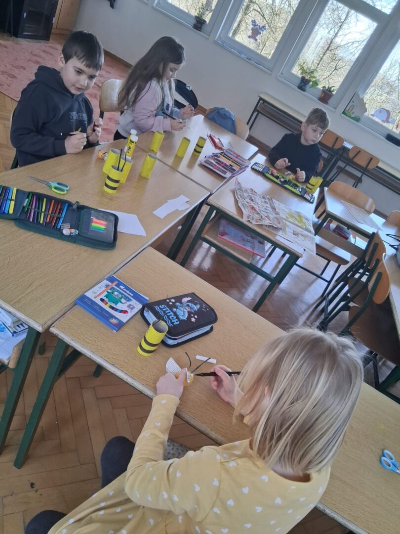Radionica je protekla uz mnogo smijeha, kreativnosti i ekološkog duha, a nastale “pčelice” ponosno su izložene u učionici.