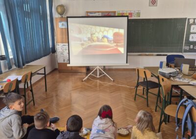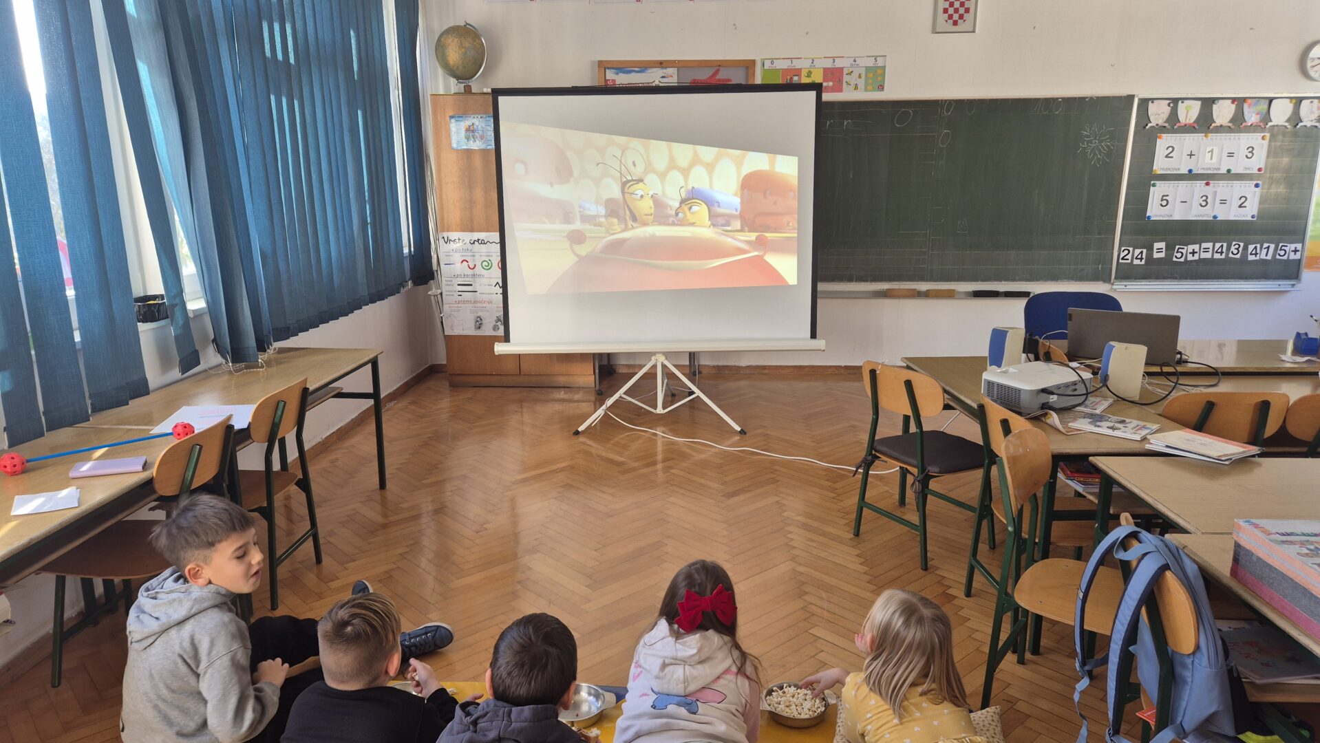 Dok su se temperom obojeni kartonski tuljci sušili, učenici su pogledali edukativni animirani film “Život pčele”, koji im je na zabavan način približio svijet pčela.