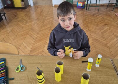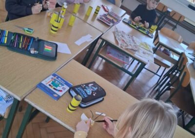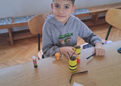 Dan je započeo kratkim uvodnim predavanjem o pčelama – zašto su važne, kako žive te na koje ih načine možemo zaštititi. Nakon toga učenici su stvarali svoje pčelice koristeći reciklirane materijale poput PET ambalaže, novinskog papira, kartonskih tuljaca i kolaža.