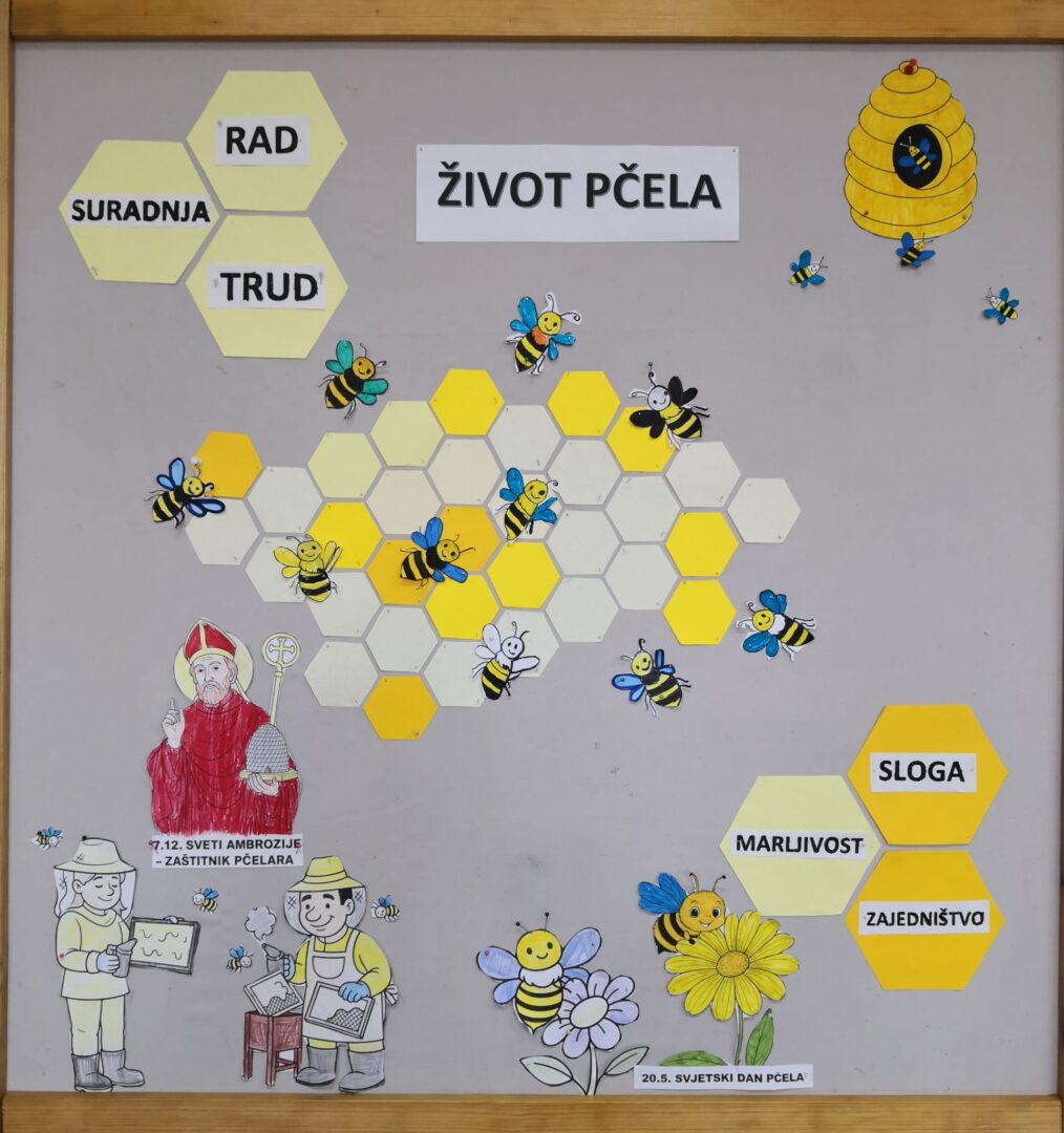 Učenici prvog i drugog razreda su kroz crtanje, izradu modela košnica i promatranje pčela, razvijali znatiželju, odgovornost prema prirodi i ljubav prema živim bićima. Učenici trećeg i četvrtog razreda su izmislili kratke igrokaze i dramatizirali ih. Projekt je potaknuo djecu na razmišljanje o tome kako i sami mogu pomoći pčelama sadnjom cvijeća i brigom o okolišu.