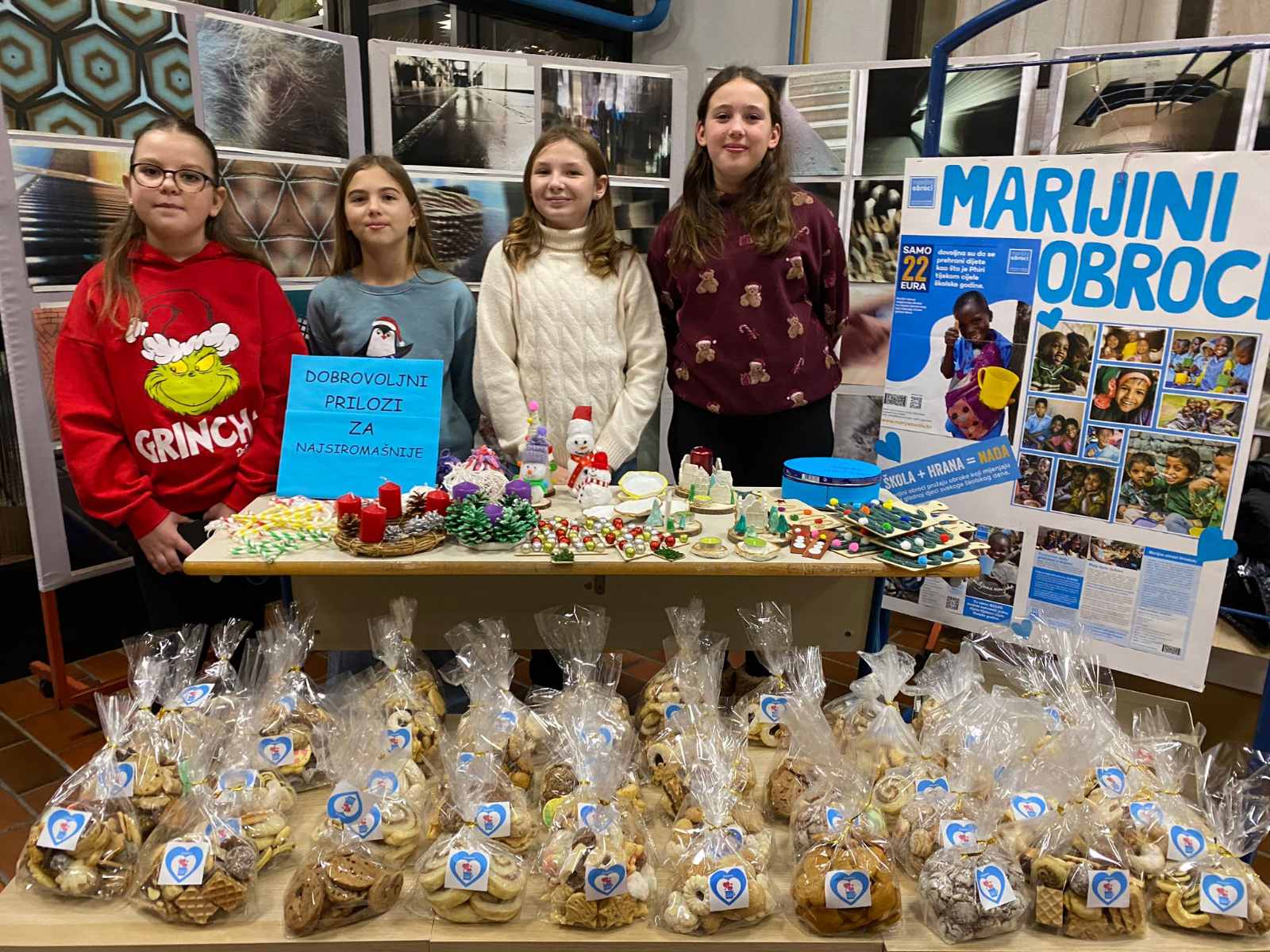 U našoj školi uspješno je provedena humanitarna akcija prikupljanja sredstava za Marijine obroke u kojoj su sudjelovali roditelji dobrovoljci učenika nižih razreda osnovne škole te pojedine učiteljice. Vrijedne ruke ispekle su razne kolačiće koji su se nudili uz dobrovoljni prilog, a ne klasičnom prodajom.