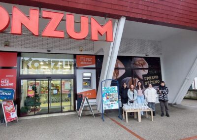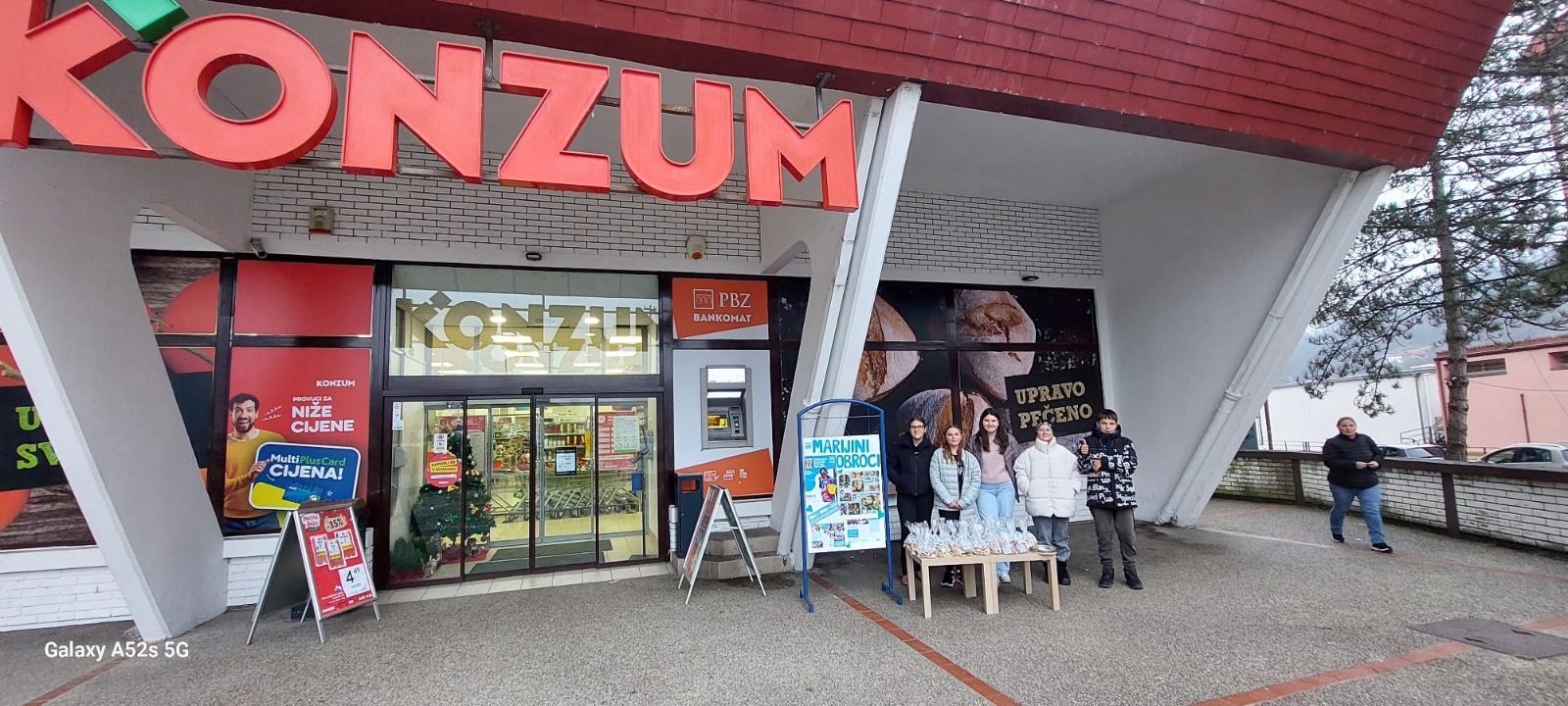 Prva akcija održana je tijekom adventa, u srijedu 3. prosinca, ispred trgovine Konzum, gdje su kolačiće nudili stariji učenici naše škole. Unatoč zimskom vremenu i hladnoći, učenici su s puno strpljenja, osmijeha i odgovornosti stajali na štandu te pokazali veliko srce, solidarnost i spremnost na pomaganje drugima.