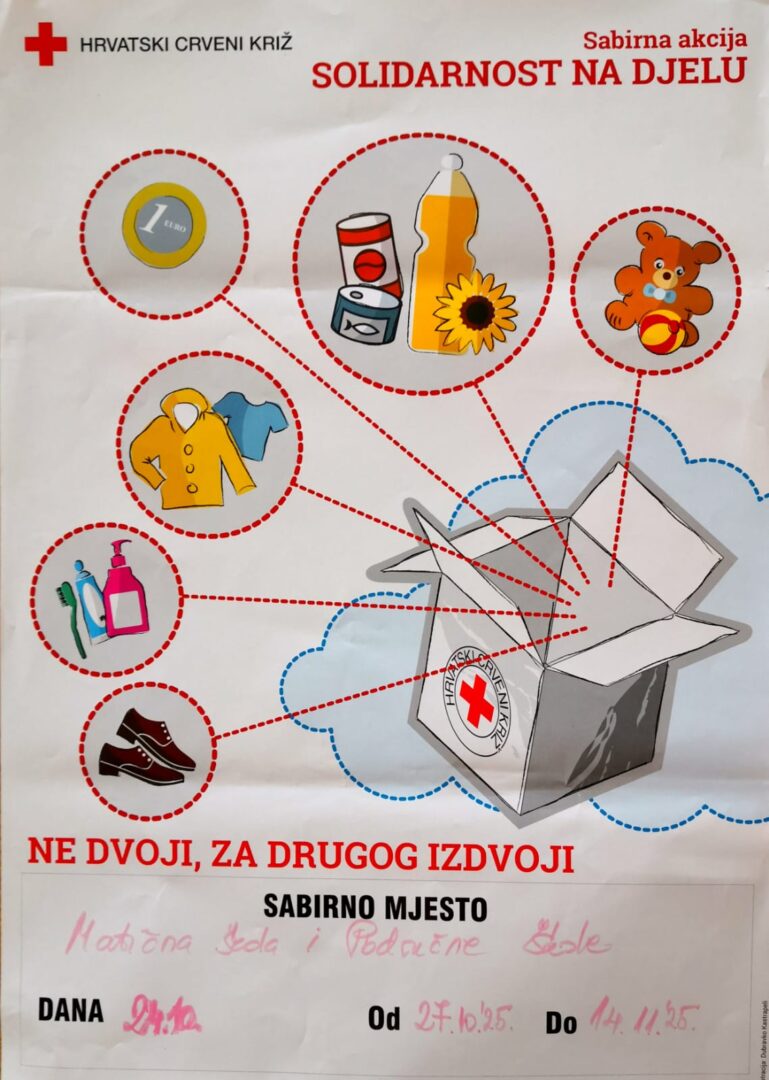 Učenici i djelatnici naše škole sudjelovali su u 53. sabirnoj akciji Crvenog križa ”Solidarnost na djelu 2025.”.