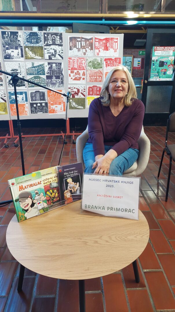 U utorak, 4. studenog u našoj školi održan je književni susret s poznatom književnicom Brankom Primorac, autoricom brojnih romana za djecu i mlade. Susret je protekao u ugodnoj i poticajnoj atmosferi, a prisustvovali su učenici viših razreda koji su ranije čitali njezina djela poput Maturalca i Ljubavni slučaj mačka Joje.