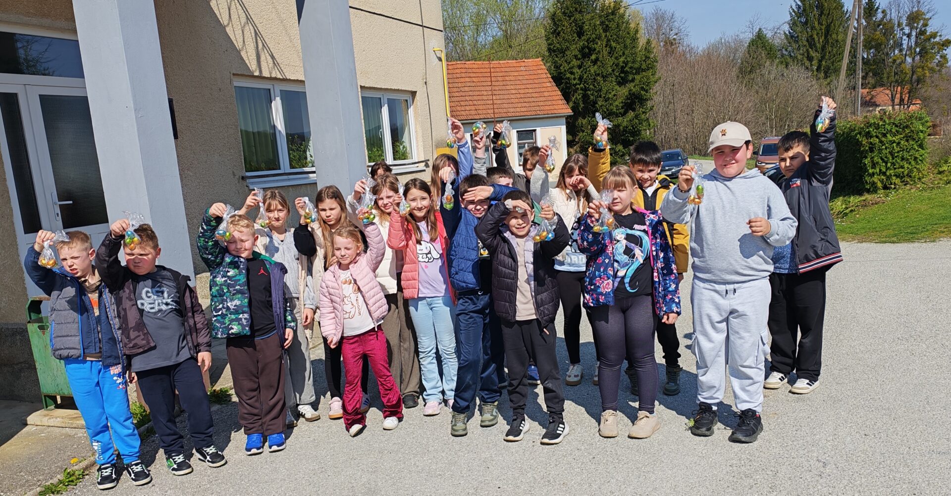 Ove godine uskrsni zeko je požurio do nas malo ranije i ostavio nam pisanice u okolišu naše škole. S veseljem smo tražili paketiće s pisanicama. Na kraju smo se svi zajedno zasladili.
