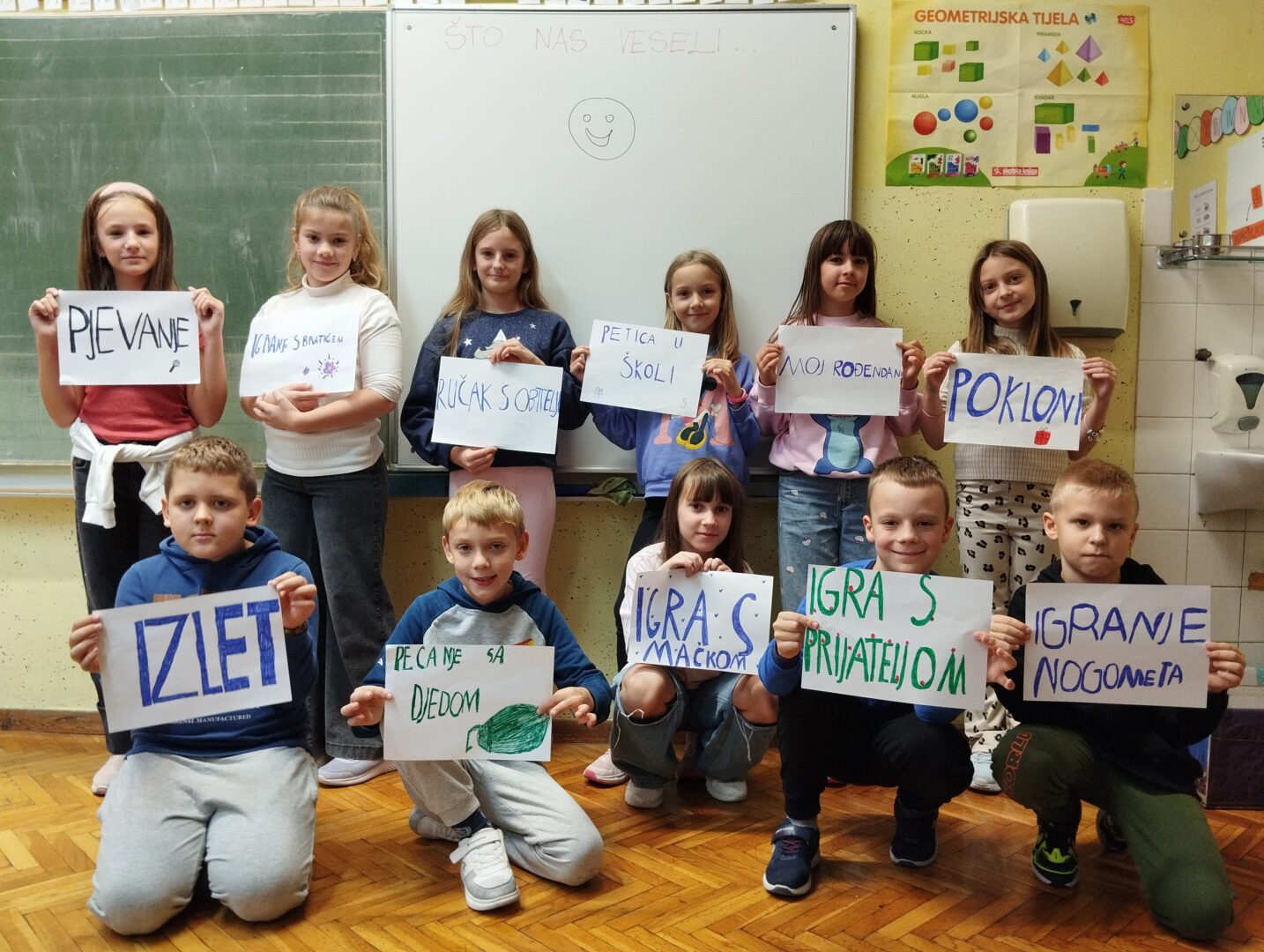 Učenici razredne nastave razgovarali su o tome što ih čini sretnima te su svoje misli i osjećaje izrazili kroz crteže. Njihove iskrene i vedre poruke podsjetile su nas koliko je važno prepoznati male stvari koje donose radost i čine nas sretnima . Fotografije možete vidjeti u prilogu.