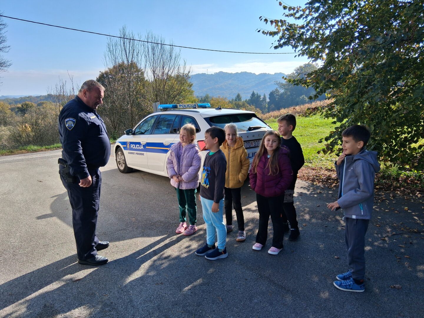 Posjetio nas je prometni policajac koji nam je ukazao na važnost poštivanja prometnih pravila radi naše sigurnosti i sigurnosti svih sudionika u prometu. Pokazao nam je i svoj policijski automobil i upoznao nas s opremom koja mu služi u obavljanju njegovog posla.