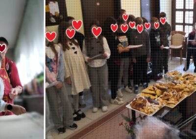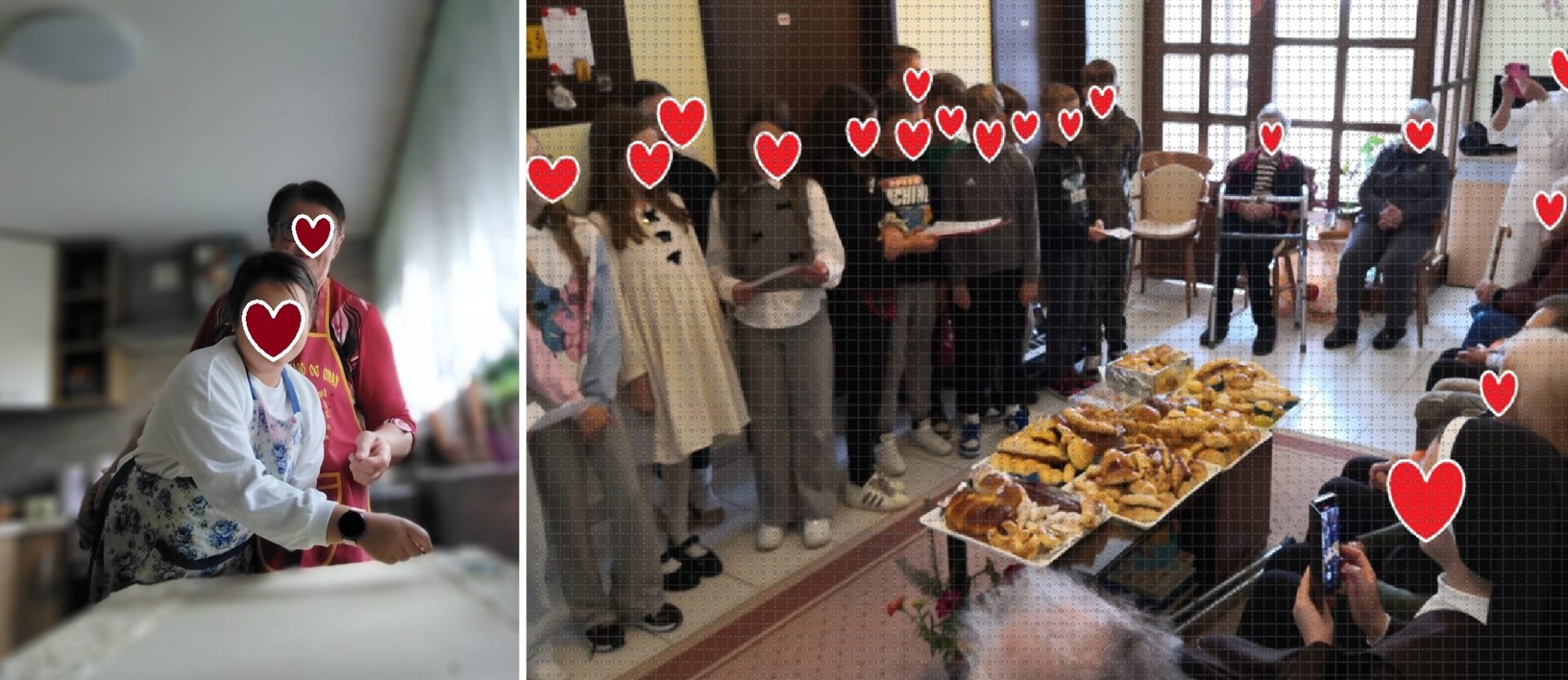 Posljednjeg dana nastave ponosno smo otišli u Poredje, gdje se o starijim osobama brinu časne sestre. Za dobro zdravlje donijeli smo im voće, održali božićnu predstavu, pjevali, recitirali, svirali i plesali. Na kraju smo s njima napravili intervju i saznali zanimljivosti iz njihovog djetinjstva. Saznali smo da su živjeli skromno, nisu dobivali darove za prvu pričest, pomagali su u kući i u poljoprivrednim poslovima te nisu slavili rođendane. Svoje djetinjstvo opisuju kao težak život, ali lijep. Opisale su kuću u kojoj su živjeli, pješačenje u školu, a za kraj su nam dali savjete za život i podijelili s nama stare pjesme kojih su se sjetili.