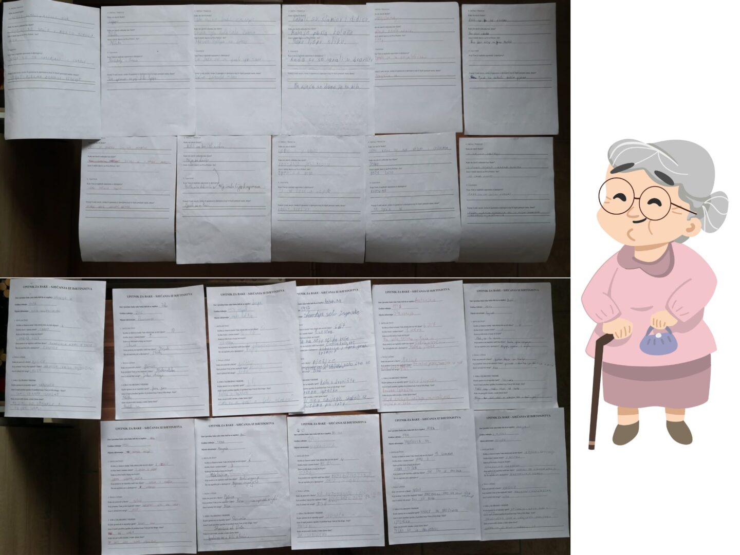 Učenici su imali intervju sa svojim bakama i djedovima. Saznali su koji su im hobiji, koja im je omiljena knjiga, što vole kuhati i jesti, što vole gledati na TV-u, koja im je omiljena pjesma i što vole raditi. Bake i djedovi su im također nešto nacrtali, a oni su nacrtali svoje bake i djedove ili zalijepili njihove fotografije na list za intervju. Na poleđini papira napisali su izreke, molitve i pjesme kojih se sjećaju iz mladosti te opisali kako su u djetinjstvu ukrašavali božićno drvce i slavili Božić. Svi su bili sretni zbog ove aktivnosti i odlično su se proveli zajedno.