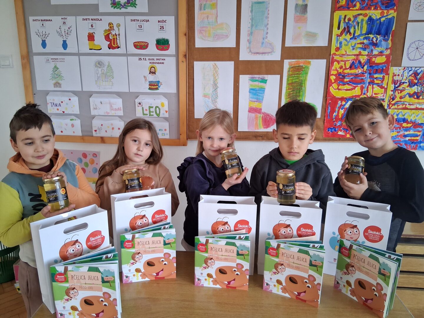 Učenici prvih razreda dobili su staklenku zagorskog bagremovog meda te edukativnu slikovnicu „Pčelica Jelica i medo Edo“. Kroz kratko predavanje i razgovor upoznali su se s time kako nastaje med i zašto su pčele važne za naš okoliš.